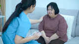 Asian female doctor Keep notes on caring for a patient with Down Syndrome at home.
