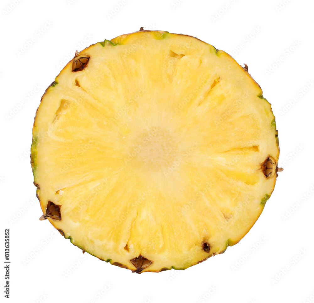 half pineapple fruit isolated, pineapple fruit macro studio photo, transparent png, PNG format, cut out