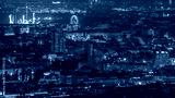Skyline of Vienna from Danube Viewpoint Leopoldsberg aerial night timelapse.