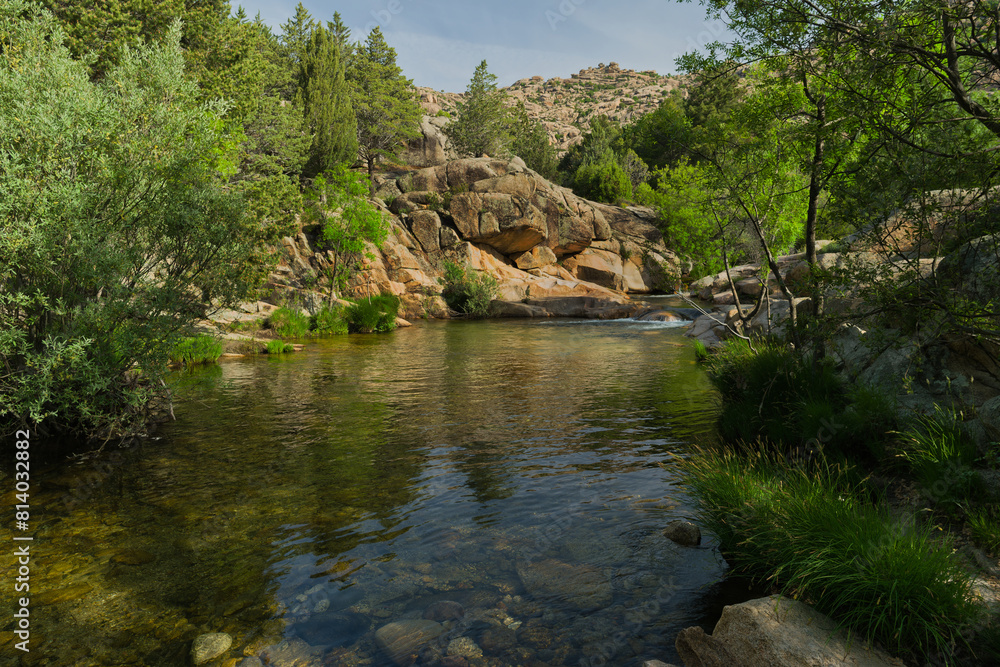 landscape, view, nature, plants, water, stream, mountain, flora,