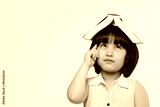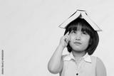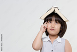 Portrait of little Asian child thinking and put a book on top