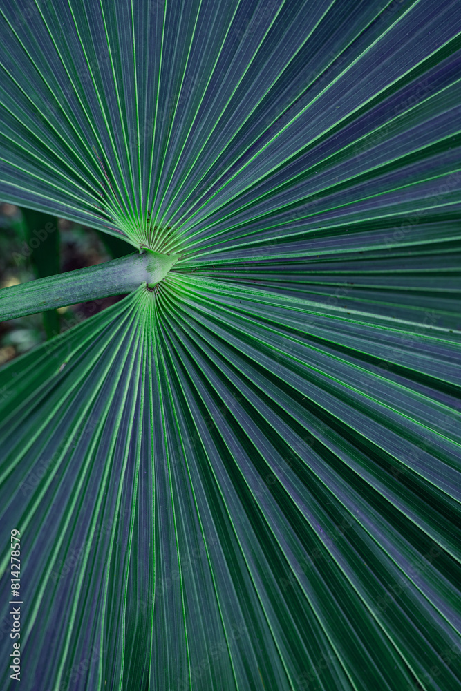 tropical palm leaf and shadow, abstract natural green background, dark tone textures.