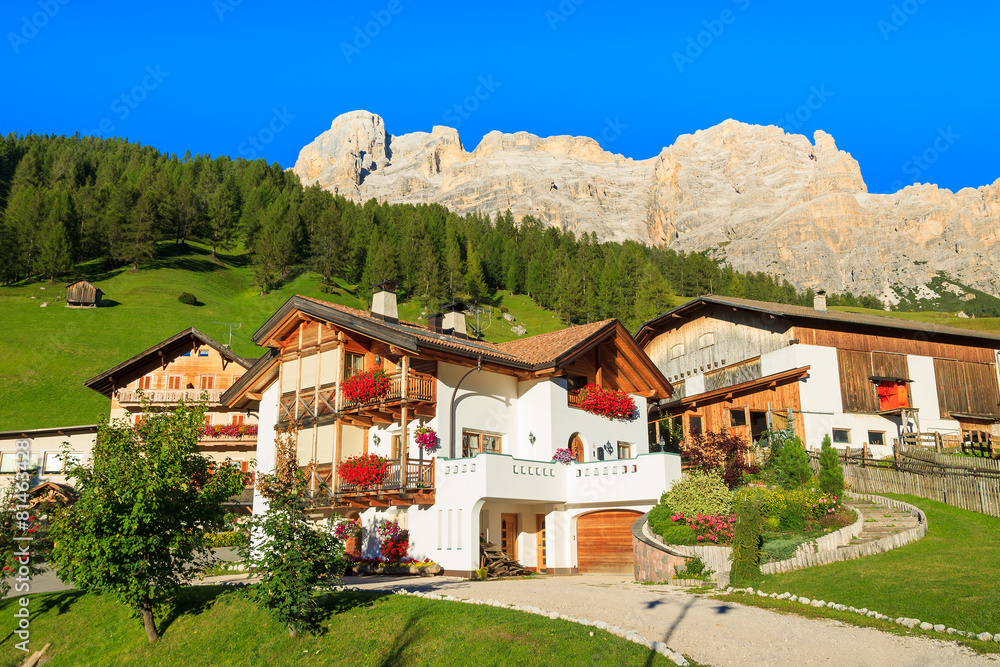 Houses in San Cassiano village in Dolomites Mountains, Italy
