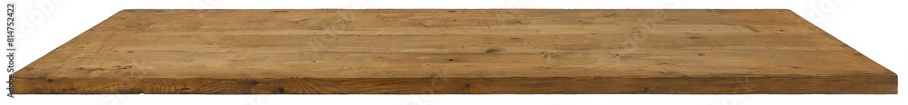 Wooden table surface. Blank Front view isolated on white background with clipping path. Useful as product display.