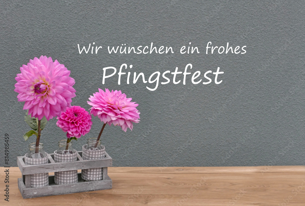 Grußkarte Schöne Pfingsten: Blumenarrangement mit dem Text Schöne Pfingsten.