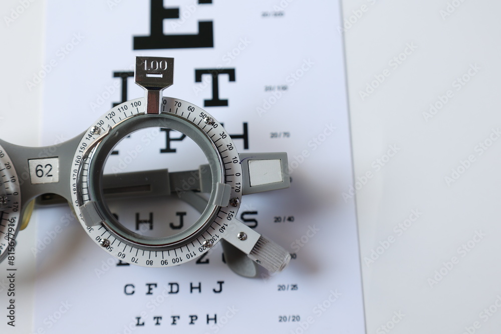 Trial frame glasses on chart