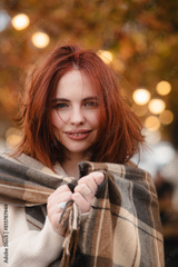A charismatic redhead embracing bohemian chic on a colorful autumn day.