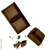 Piece of chocolate explosion isolated on white background. Levitating dark chocolate chunks Collection. Top view. Flat lay. Pattern.