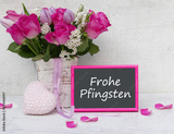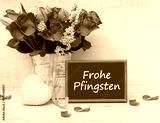 Grußkarte Schöne Pfingsten: Blumenstrauß mit dem Text Frohe Pfingsten.
