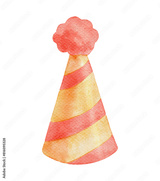 Watercolor party cute retro striped hat. Hand drawn isolated illustration