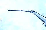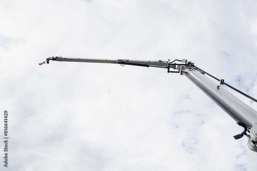 Industrial aluminium telescopic boom lift crane extension parts close up with th sky in the background