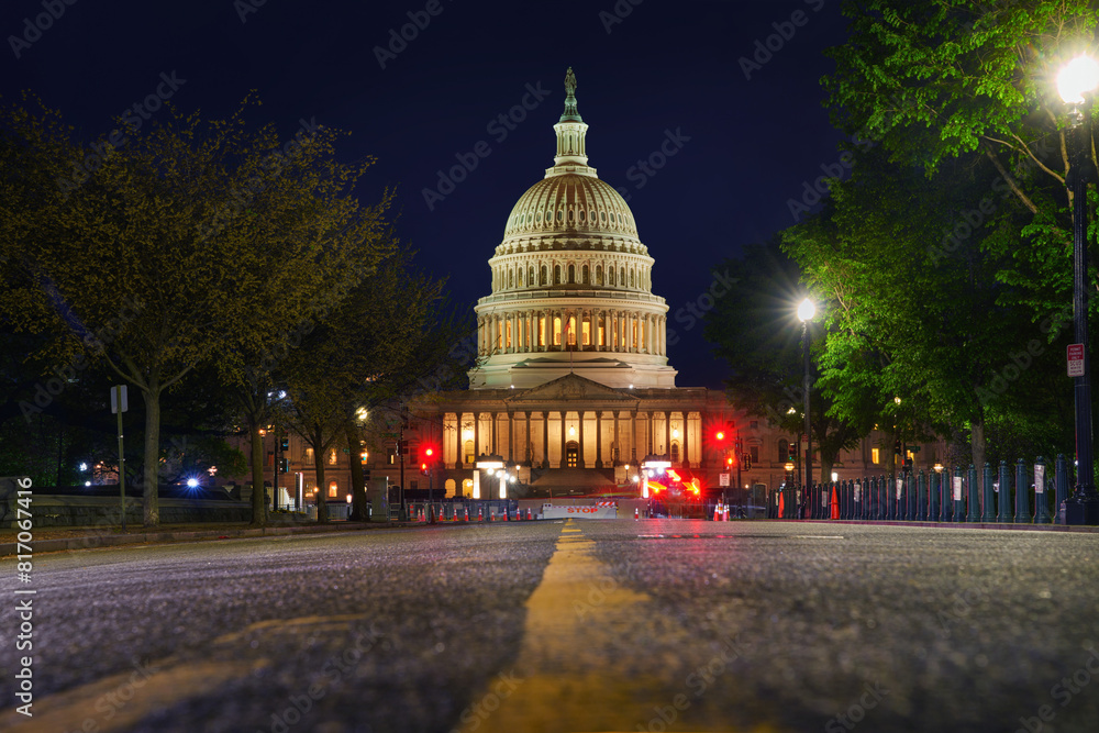 US Capitol building at sunset, frontal view, Washington DC, USA.