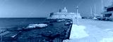Panorama of Fort Saint Nicholas in Mandraki Harbor, Rhodes, Greece