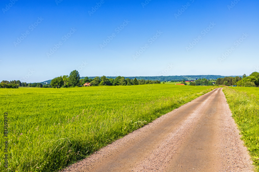 Rural view with a dirt road by a field