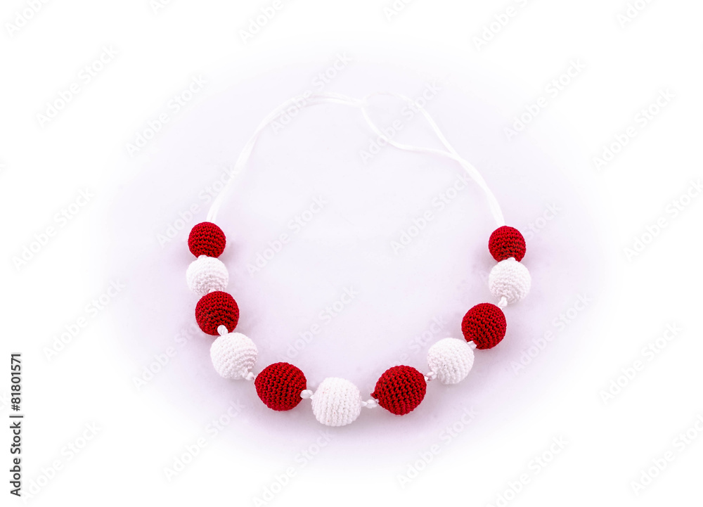 Crocheted Yarn Beads on White Background Handmade Boho Jewelry Display