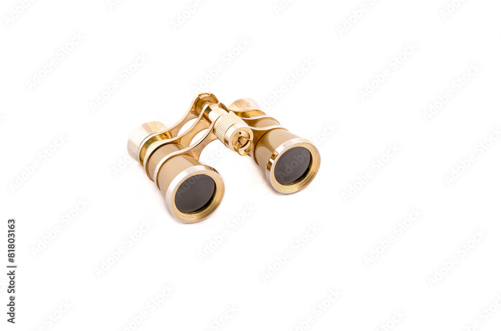 Little Theater Golden Binoculars on White Background Luxurious Performance Accessories