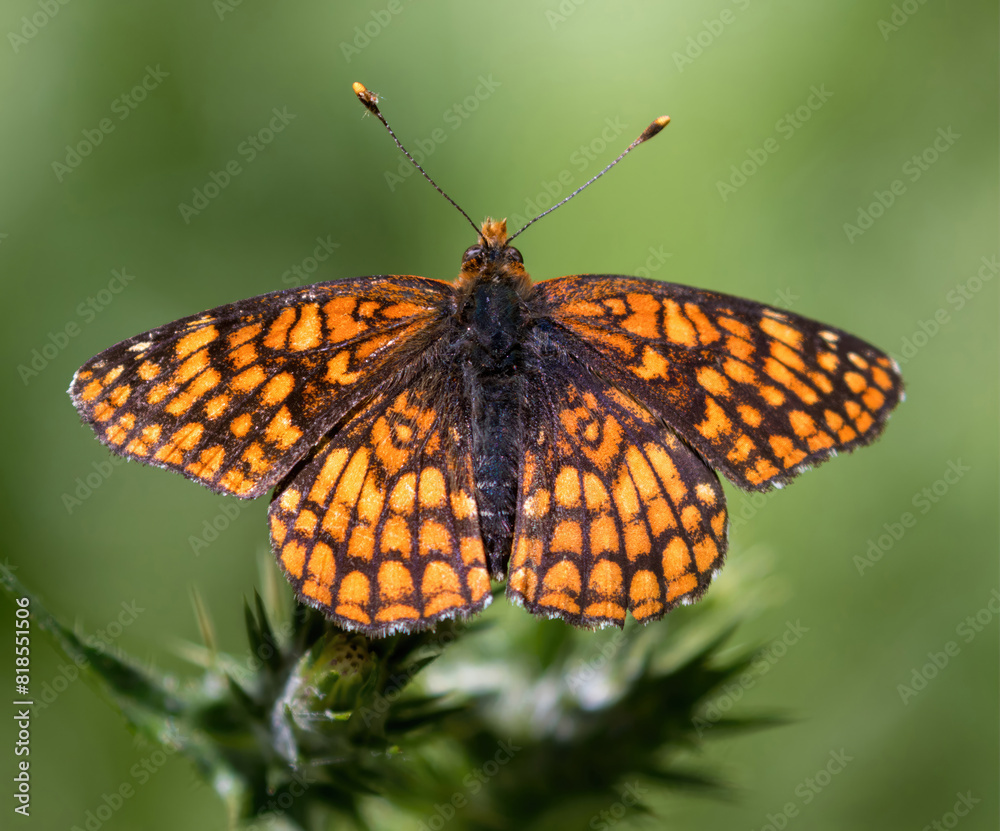 Northern Checkerspot butterfly feeding on Thistle. Hidden Villa, Los Altos Hills, California.