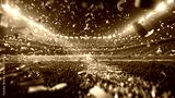 Soccer stadium with confetti as its peak moment background. Generative AI