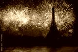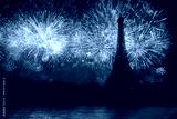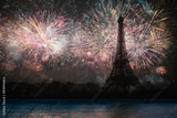 Eiffel tower with fireworks at night in Paris, France. The Eiffel tower is the most visited touristic attraction in France