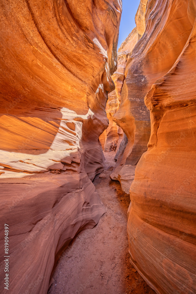 Antelope Canyon - colorful slot canyon with oranges, yellow, purples and blue in Arizona, USA on 28 April 2024