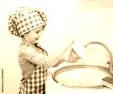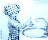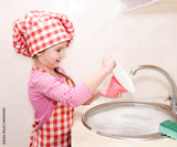 Cute smiling little girl washing the dishes