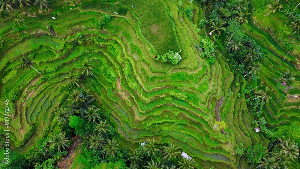 Aerial view of green tea plantations on a mountain