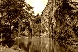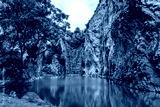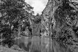 Beautiful nature scenic landscape with mountain range and beautiful hidden spot in Khao Ngu Stone Park at Ratchaburi, Thailand. Landscape view of mountain cliffs In green canyon lake. Amazing nature.