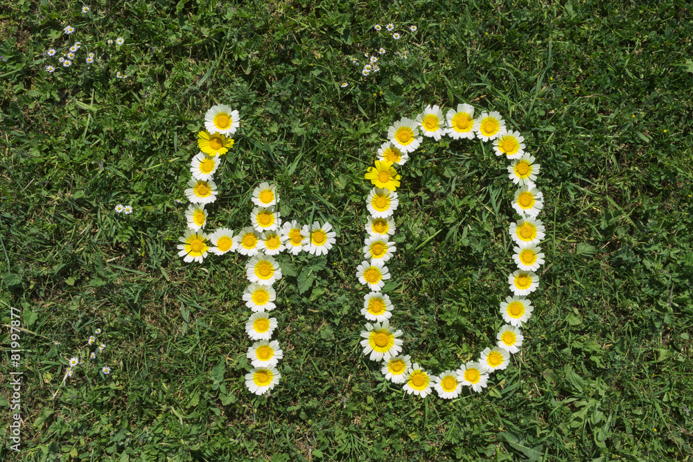 Numeral 40 of blossoms in gras
