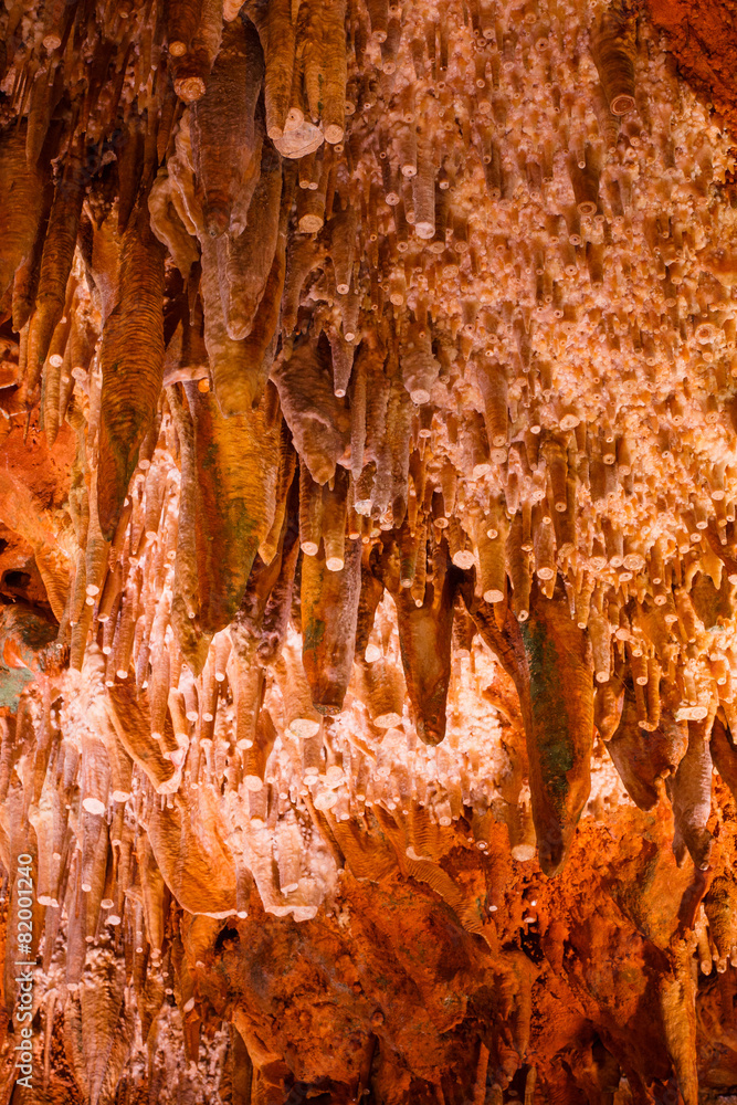 View of the Stalactites and stalagmites in Damlatas Caves.