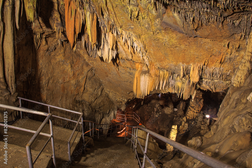 View of the Stalactites and stalagmites in Dim Caves.