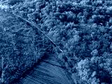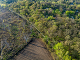 Steamboat Trace, bike trail converted from an abandoned railroad at Peru, Nebraska, springtime aerial view