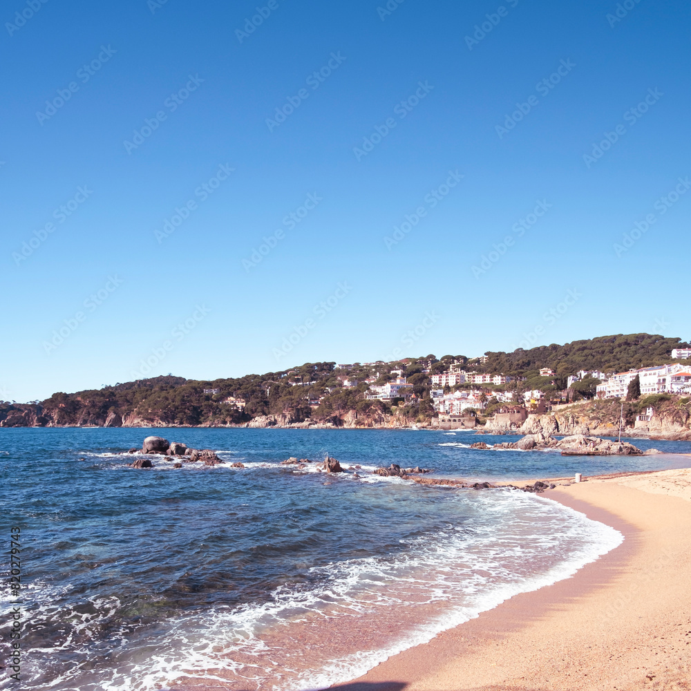 Beautiful seascape on the quiet waters of Mediterranean Sea shore in a beautiful beach in Costa Brava, Catalonia