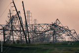 Power lines are down near Grand Parkway and West Road after Thursday's storm in Cypress, near Houston, Texas.