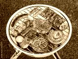 filled grill with glowing charcoals