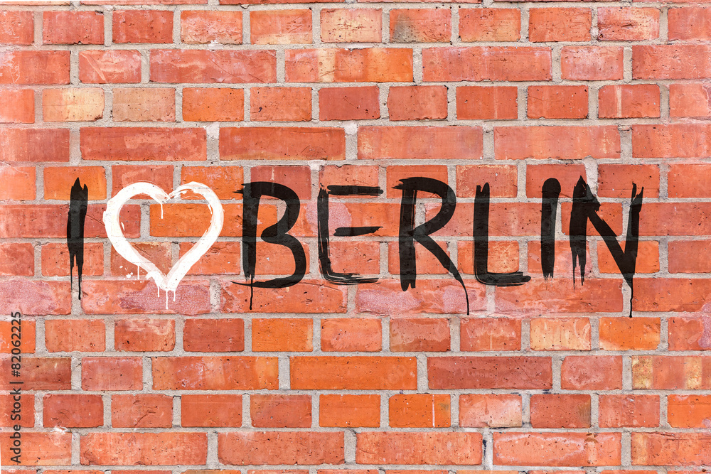 "I love Berlin" Graffiti auf einen Mauerhintergrund gerendert