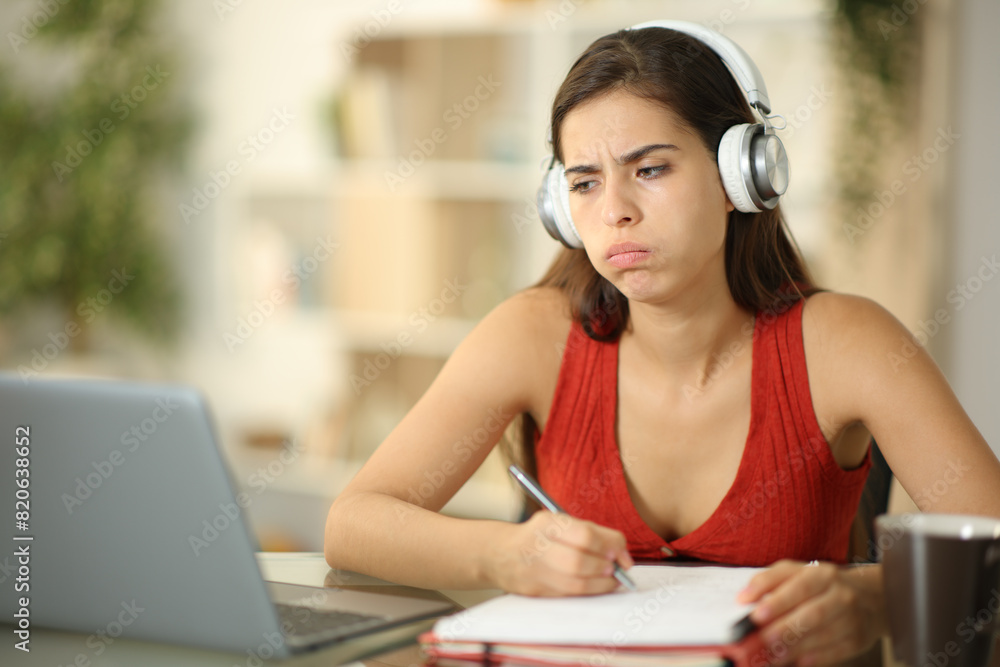 Overwhelmed student doing homework at home