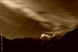 Annapurna I Himalaya Mountains in Nepal at night with clouds mov