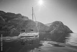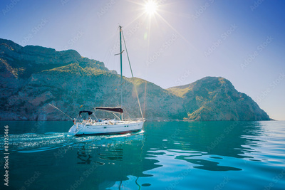 Yacht sailing along the shore the sea in calm weather.