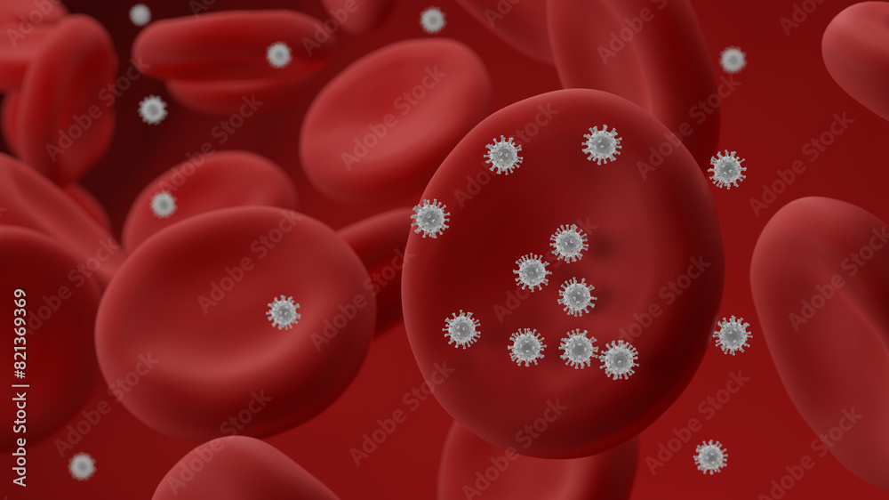 Blood cells virus. Erythrocytes. 3d illustration.