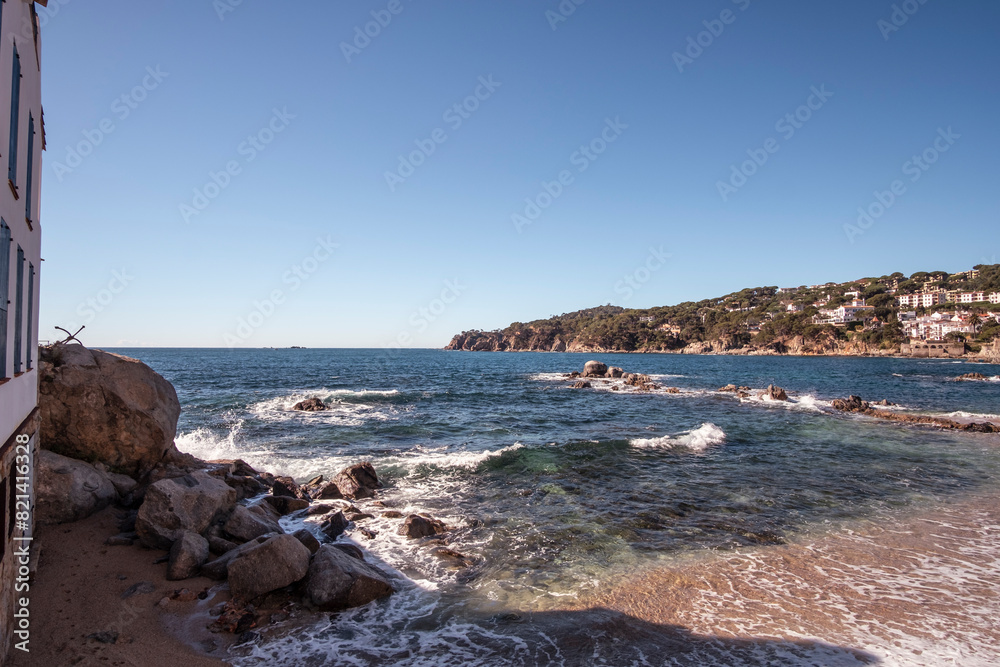 Beautiful coastal beach landscape in beautiful town quiet waters in Costa Brava, Catalonia