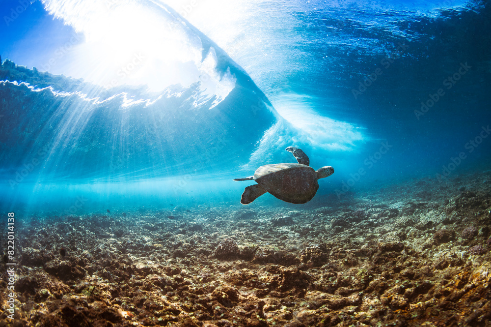 turtle emputed under wave