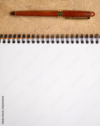 blank spiral notebook on art paper in earth tones with a luxury pen
