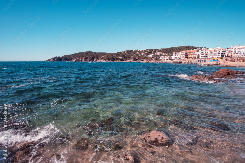 Beautiful beach landscape in touristic town village quiet waters in Costa Brava, Catalonia