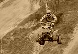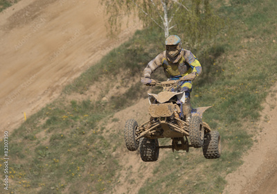 Quad racer is high jumping. Horizontally.