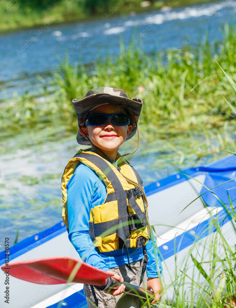 Boy kayaking on the river