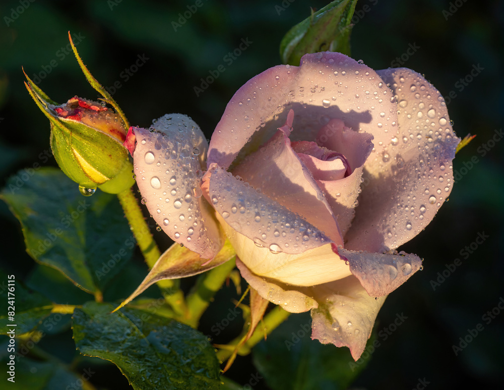 'Gemini' Pink blend Hybrid Tea Rose in Bloom. San Jose Municipal Rose Garden in San Jose, California.