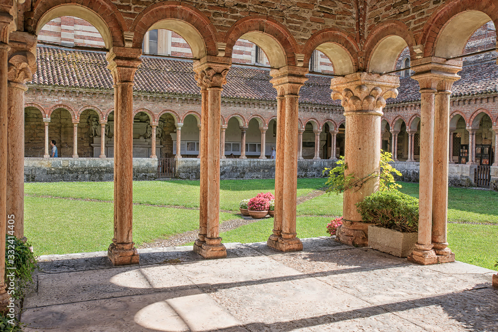 Urban railway tracks with multiple paths and an approaching red train against a backdrop of modern city buildings.