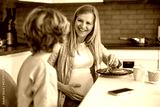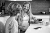 Little boy with his pregnant mother at home