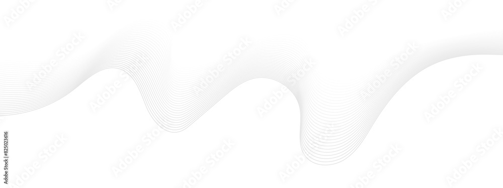 Grey Wave Swirl, frequency sound wave, twisted curve lines with blend effect. Abstract grey wave lines on transparent background. Technology, data science, geometric border pattern.