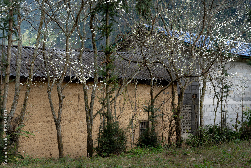 The peach blossoms blooming in spring on area the high mountains in Son La province, Vietnam.